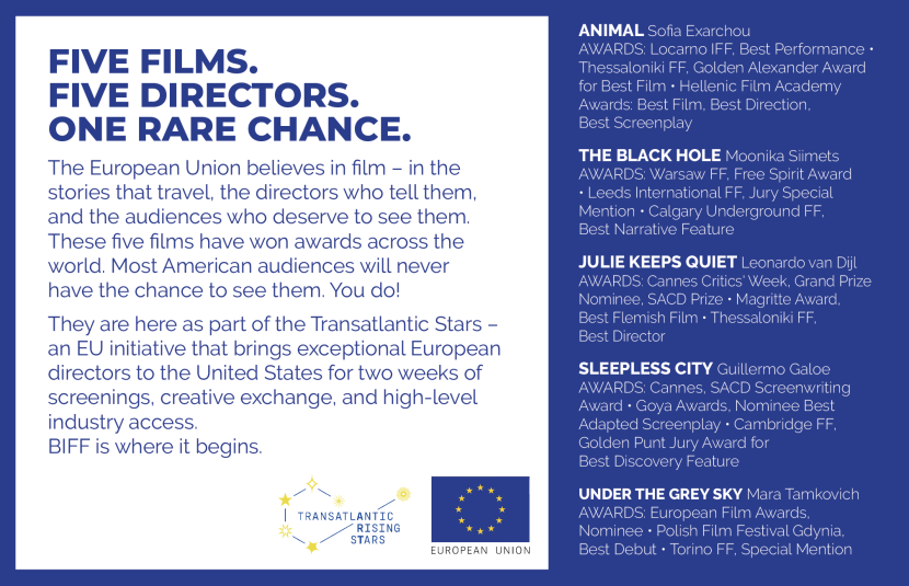 New to the Festival this year, Transatlantic Stars brings a select group of award-winning EU filmmakers together for an honest conversation about what it means to make work across borders in this moment.